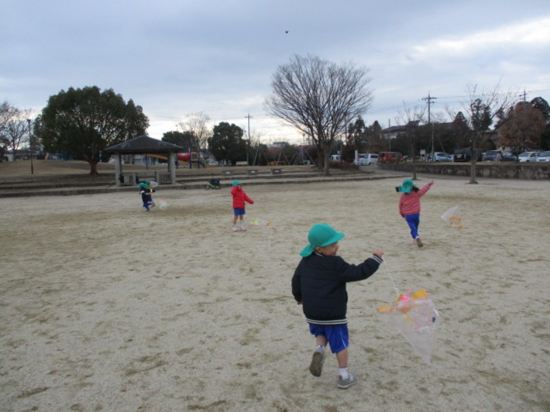 ふわふわ浮かぶ凧を全力で追いかけ、身体を沢山動かし元気一杯の子ども達でした。
