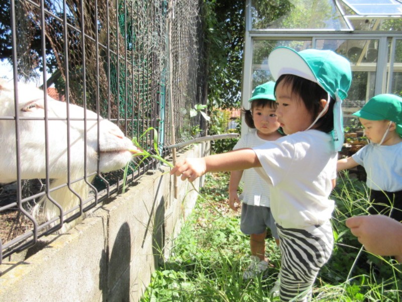 朝夕が涼しくなり、少しずつ過ごしやすくなってきましたね。 ガストロノームに居る「ヤギさん」に会いにお散歩に出掛けると 心地良い風が吹く度に「涼しい!」と言って子ども達も秋の訪れを 肌で感じていました。 保育者が近隣の方に「おはようございます」と挨拶するのを真似て 元気一杯に挨拶をする姿が見られましたよ。