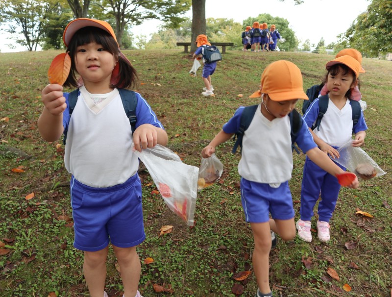 落ち葉拾いでは、自分が綺麗だと感じた葉を沢山集めましたよ。