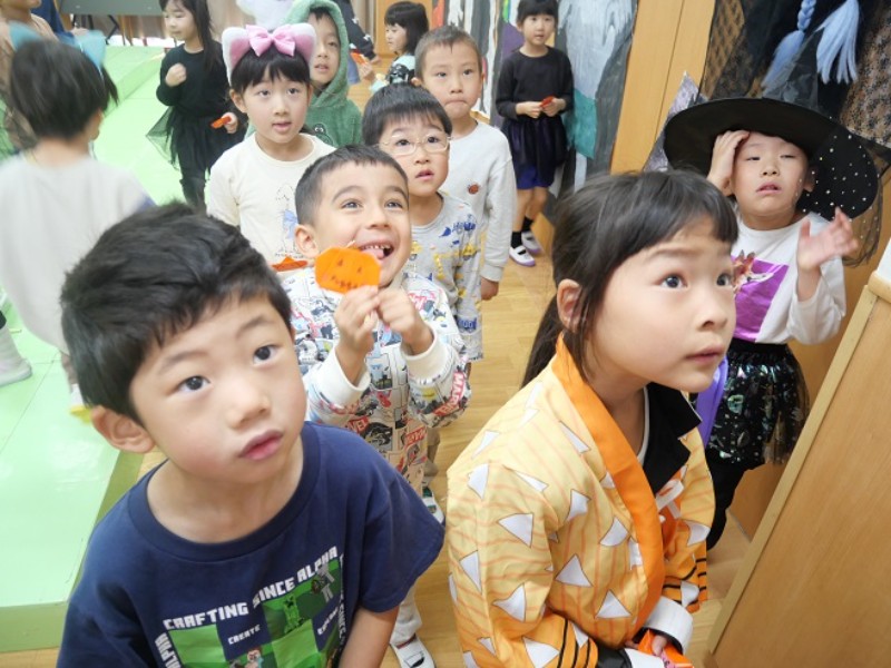 今日は、楽しみにしていたハロウィン会がありました。 ハロウィン会後は皆でジャック・オ・ランタン捜しに挑戦しました。 見事全員分のジャック・オ・ランタンを見つけ出す事が出来 魔女さんから、おやつを頂き大満足のぞう組さん達でした!