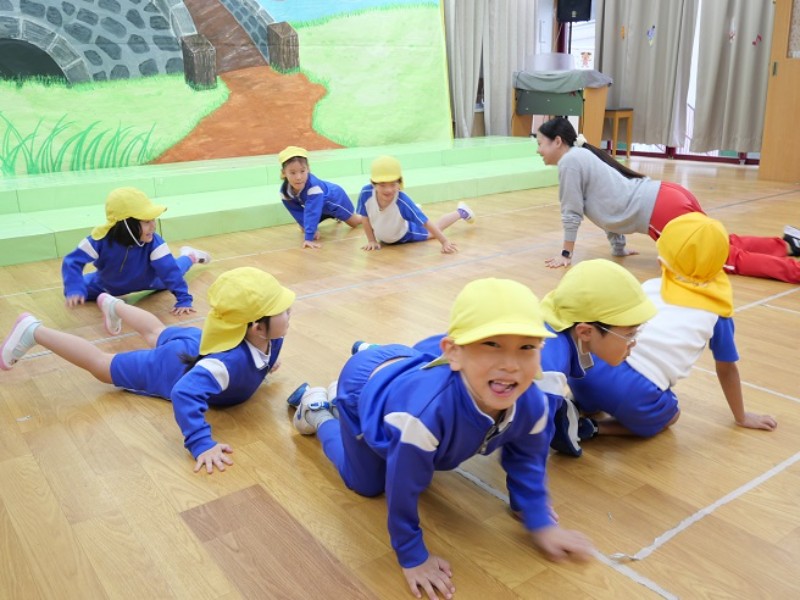 動物になり切ってお引越しゲームをしたり、英語で色を聞いて