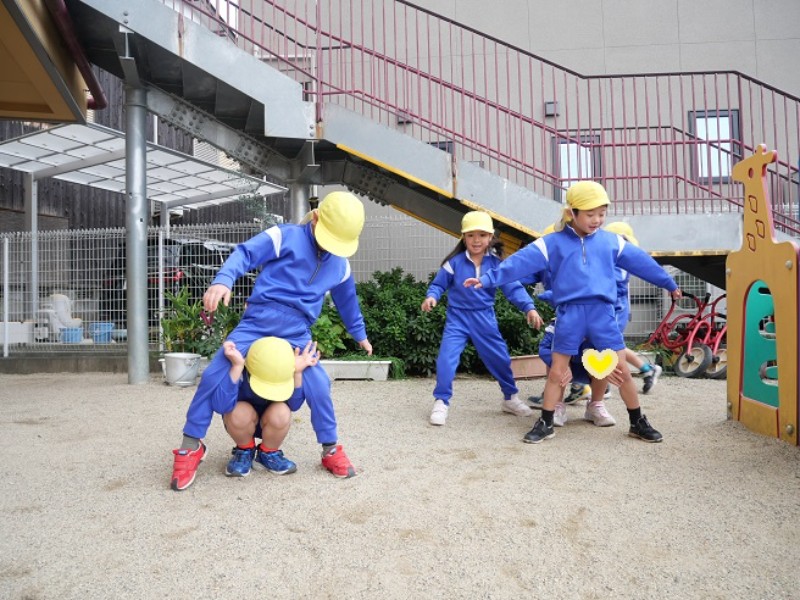 園庭に出ると「鬼決めはー!」と集まり、皆で足を出し合う姿が