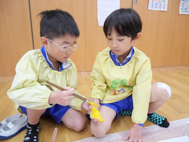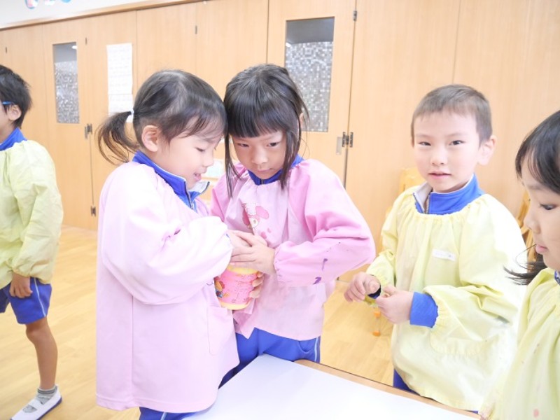 「ピンクにしよう!」「次は塗るね!」等、会話をしながら