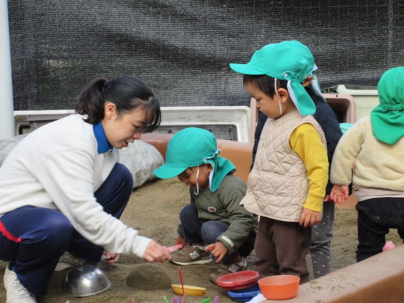 今日は園庭に出ました。 プランターに植えた人参も沢山芽が 出ていて嬉しそうに眺める姿が見られました。 滑り台も大人気で滑る度に着地が上手になり 子ども達にとって難しい事であっても、繰り返し チャレンジする事の大切さを感じました。