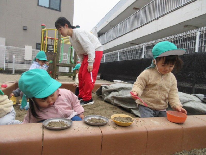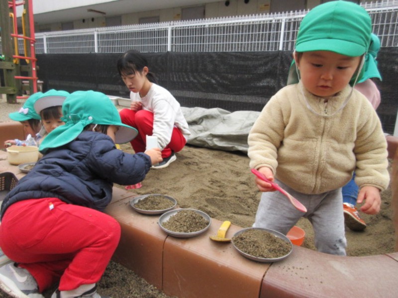 今日は、園庭で遊びました。 今日がクリスマスという事で子ども達は、お料理を作ってくれました。 「ご飯出来たよ」「ケーキも作ってる」と沢山美味しい手料理を作って くれましたよ。 今日のお家のご飯を楽しみにしているあひる組さんでした!!