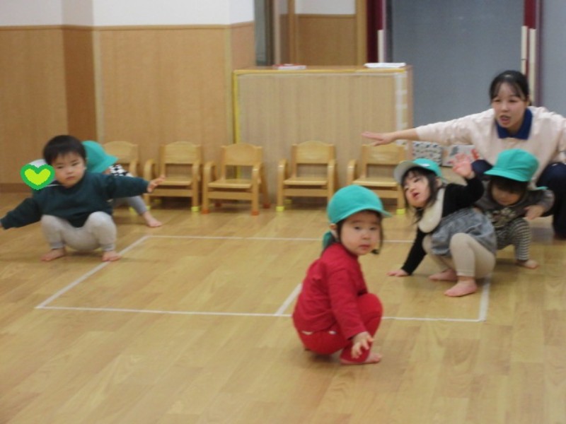 今日は、室内でリトミックをしました。 メロンチーム、スイカチームに分かれ、ピアノの音に 合わせて身体を動かすあひる組さんは、少し難しい 動きも保育者を見て、真似をしながらリトミックを 楽しんでいましたよ