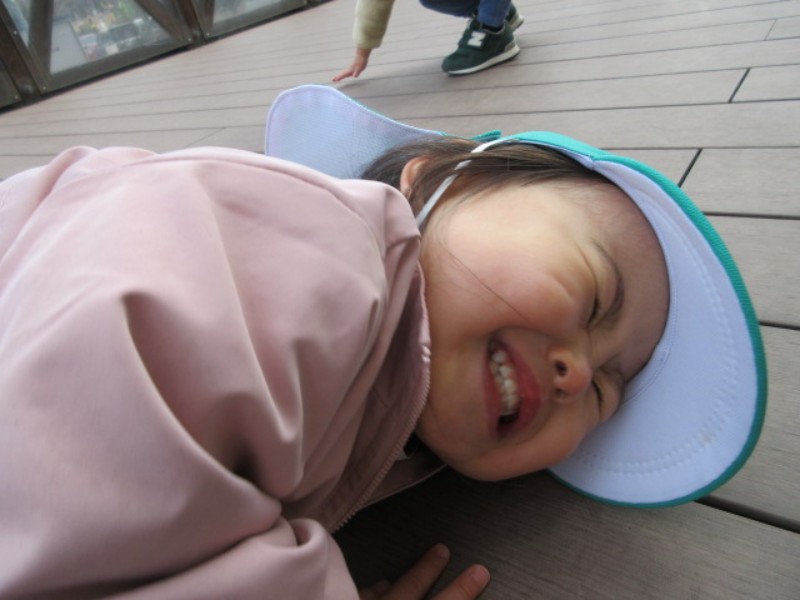 今日はテラスで遊びました。 長いロープを使って「ヘビ」に見立て捕まえたり、下を潜ったり また、一本橋..