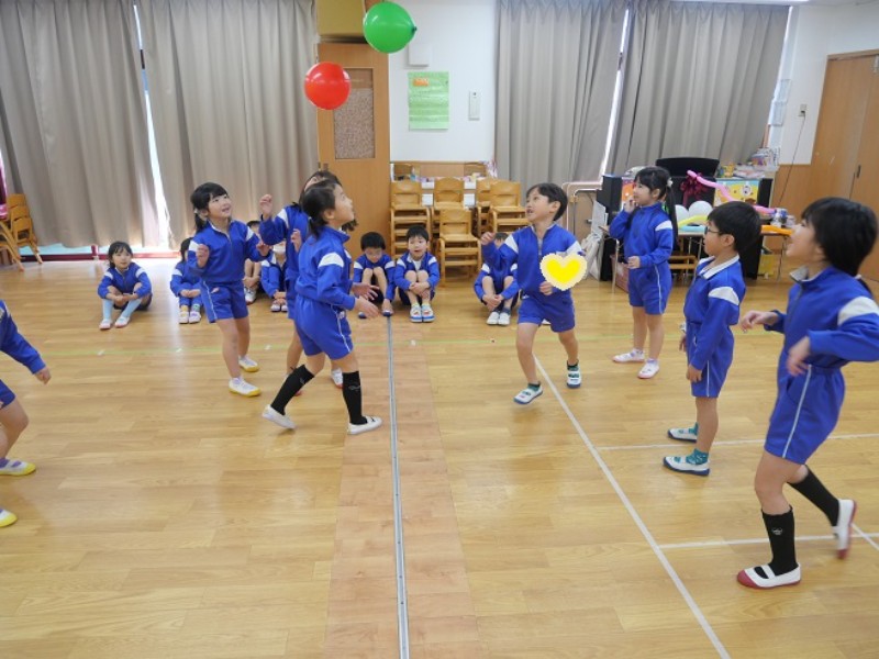 今日は、クリスマス会だったので一日お楽しみディにしました。 風船バレーをすると、皆大盛り上がりで白熱..