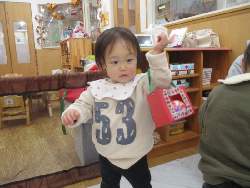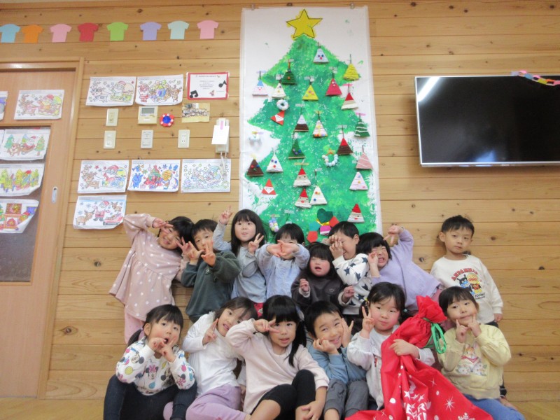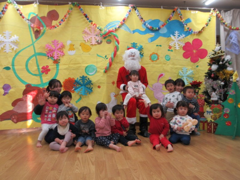 今日は、クリスマス会がありました。 サンタクロースに大きなプレゼントをもらって 大喜びのくま組さん。..