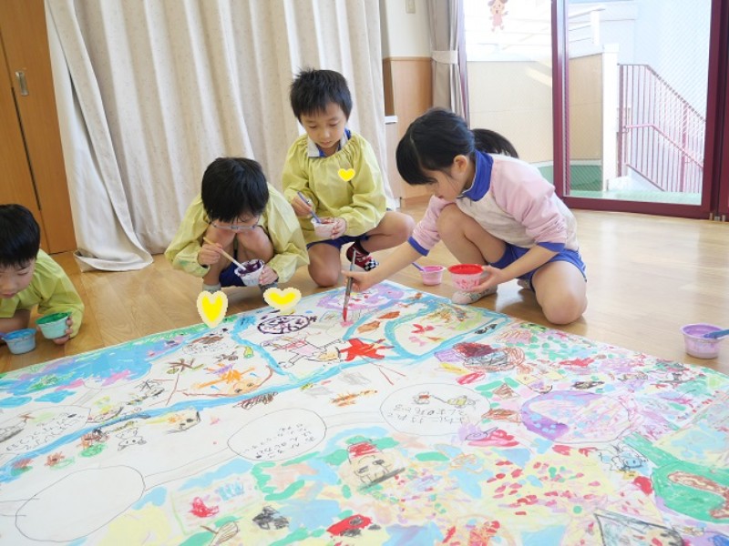 今、ぞう組では共同で巨大すごろくを作成しています。 グループ内でエリアのテーマを決めて、マス目の指示..