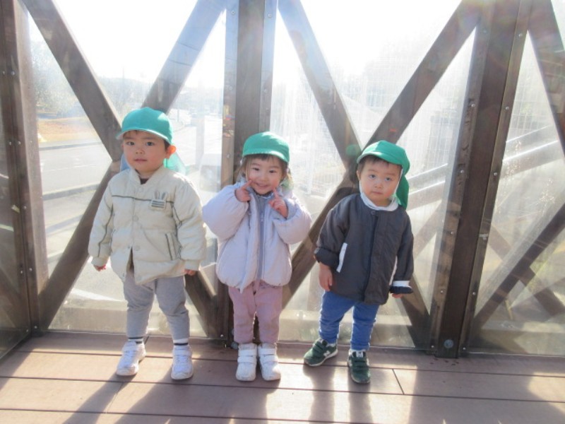 りす組さんと一里山公園へお散歩に行きました。 りす組のお友達と手を繋ぐ子ども達の表情は 誇らしい姿で..