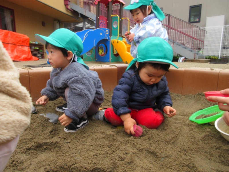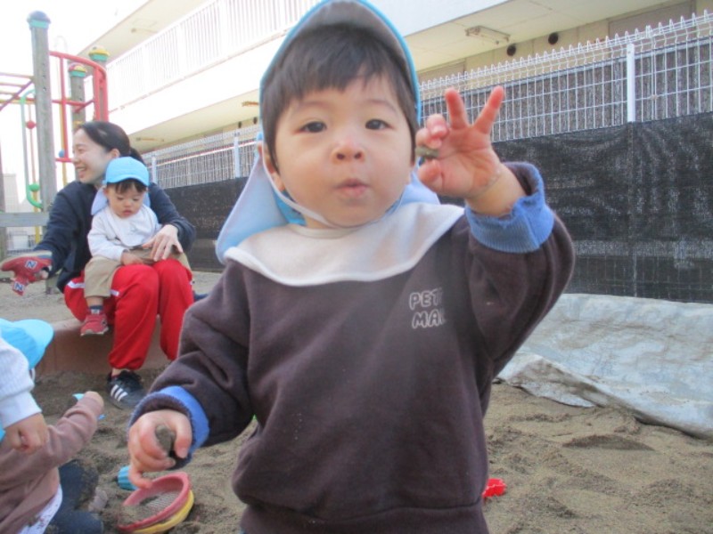 園庭で遊びました。 冬空の下、伸び伸びと身体を動かし、好きな遊びを 見付ける子ども達でした。 「小石..