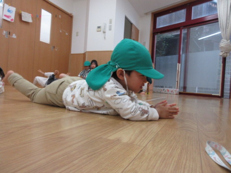 組体操の取り組みをしました。 憧れのぞう組になる為に、保育者の手と動きを しっかり見て、動く事ができ..