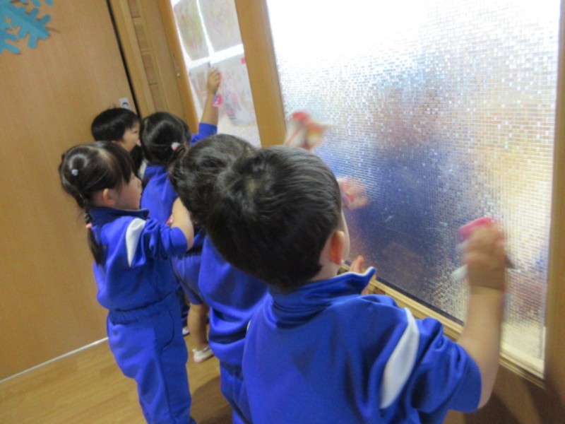 2025年最後の活動は、保育室の大掃除をしました。 ロッカーや床、壁を雑巾で拭いていきどんどん綺麗に..