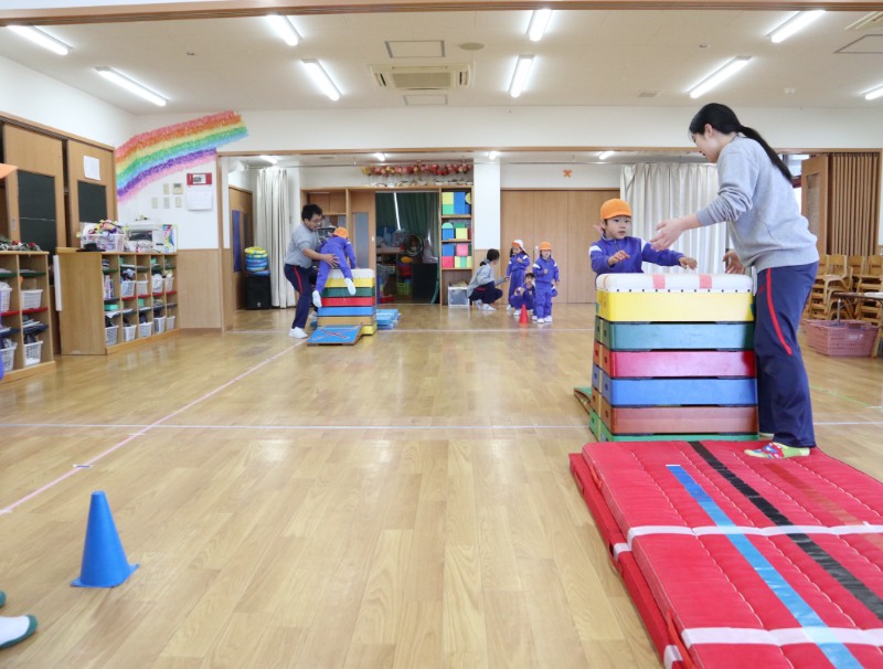 年内最後の体操でした。 運動会を想定したリズムのある跳び箱に挑戦しました。 くま組さんは、助走前に元..