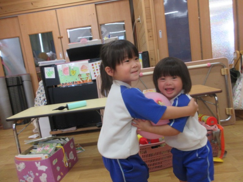 2025.09.18 うさぎ組今日は風船リレーをしました。 二人組になり、お腹で風船を挟んで走りました。 応援したり、ペアのお友達..