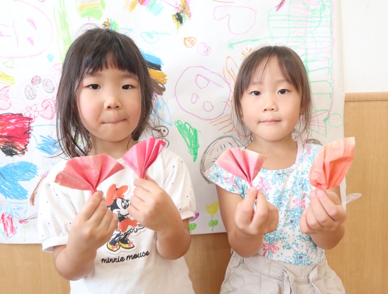 2025.09.18 くま組コーヒーフィルターを使って落ち葉の製作をしました。 色が染まる様子に夢中になる子ども達でした。