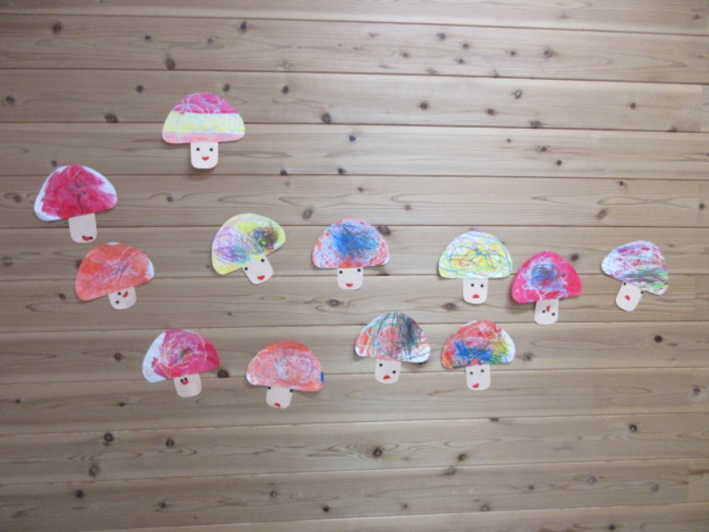 2025.09.19 りす組5種類のキノコの写真を出すと、どれも「きのこ」と答える 子ども達に、「しいたけ」「エリンギ」「シメ..