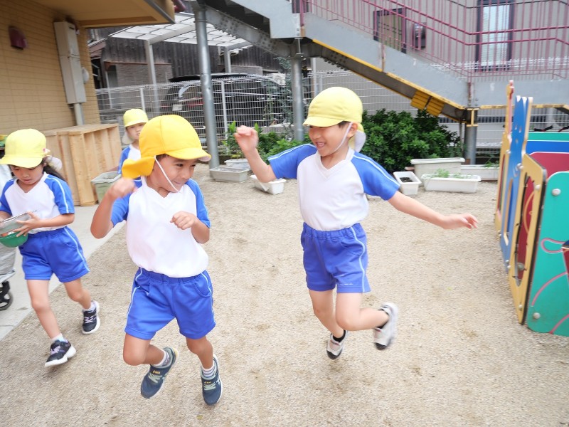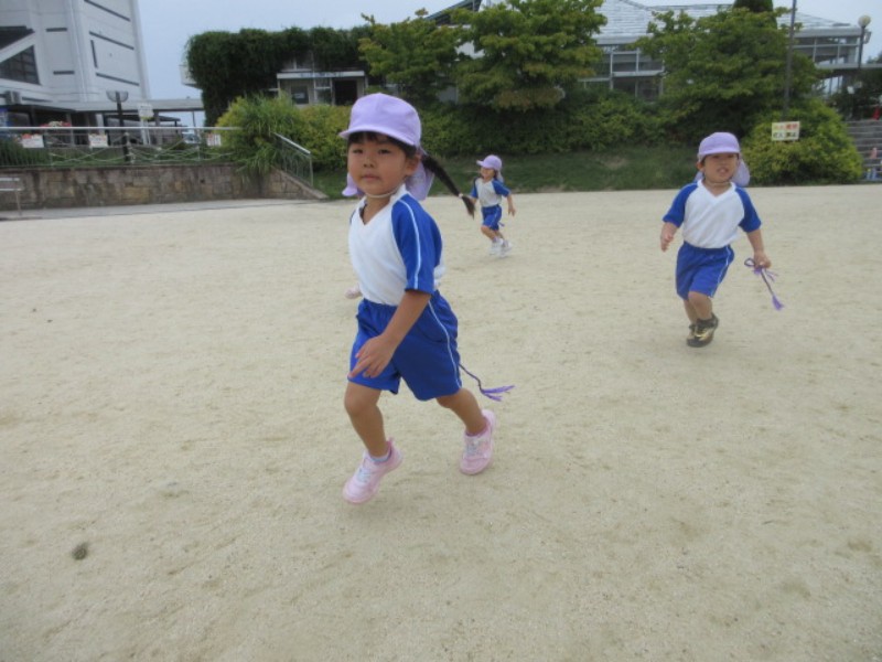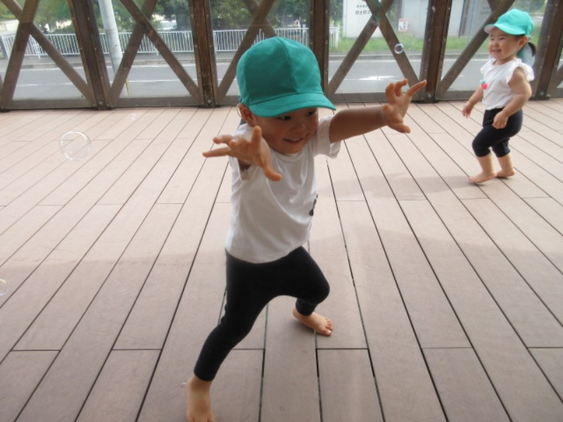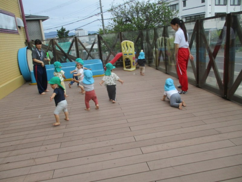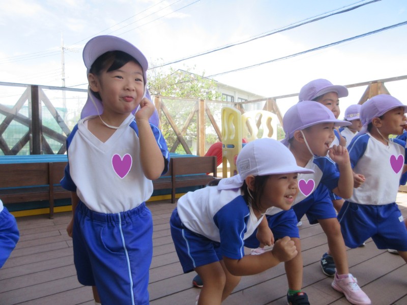 2025.09.22 うさぎ組テラスで駆けっこをしたり、だるまさんが転んだをして遊びました。 涼しい気候の中で沢山身体を動かし、楽..