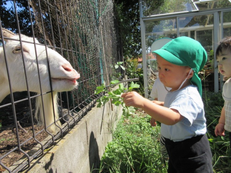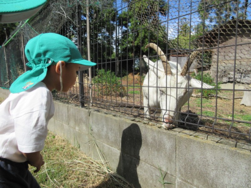 2025.09.30 あひる組今日は、あひる組さんが大好きな山羊を見に行きました。 山羊さんが近づいてくると「ご飯どうぞ」とご飯を..