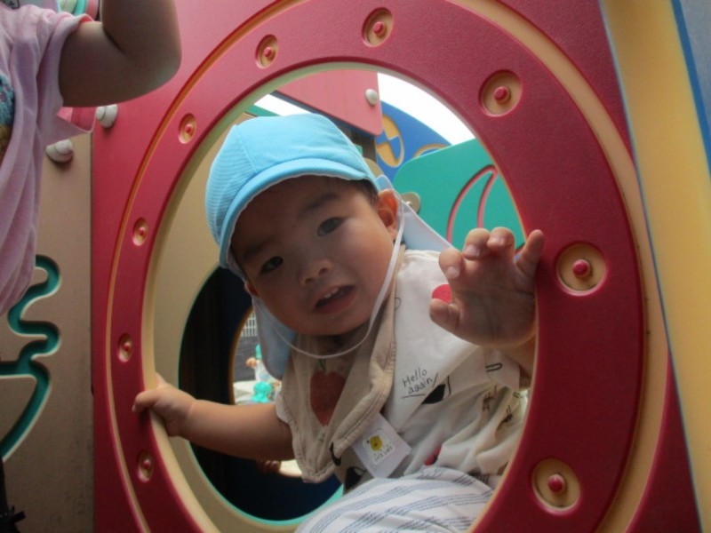 2025.09.24 ひよこ組園庭の動物トンネルで遊びました。 姿勢を低くして潜ったり、向こうに居るお友達とお顔を見合わせて 見つ..