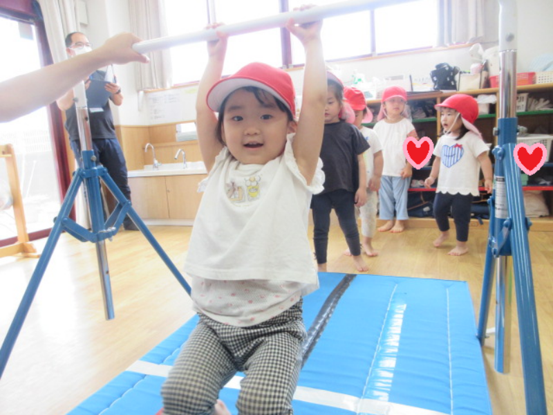 2025.09.25 りす組今日は、運動遊びをしました。 鉄棒では、前回と比べて自分の中でぶら下がる事が出来る様になり 足を鉄棒..
