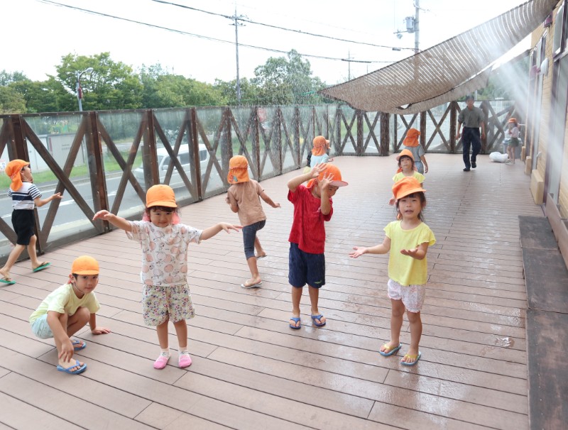 2025.09.26 くま組今日は、最後の水遊びをしました。 お水に掛かると「冷たい、気持ちいい~」とお友達と楽しむ姿が見られま..