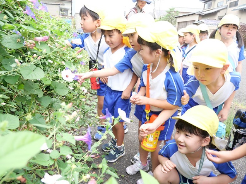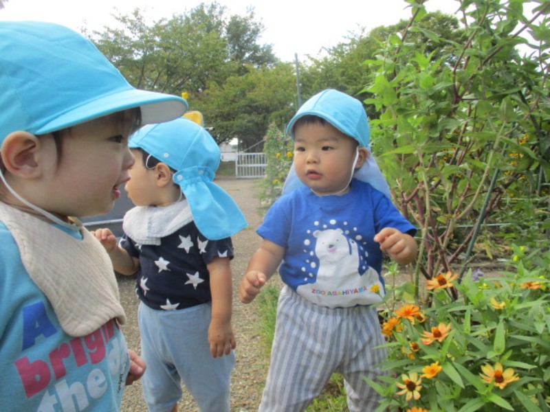 2025.09.26 ぞう組今日は、園周辺を散策をしていた時に、コスモスや朝顔等様々な 草花が咲いており、匂いを嗅いでみたり観察..