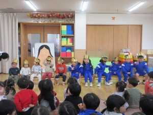 1月と言う事で正月遊びのコマやけん玉を先生達が披露してくれました。